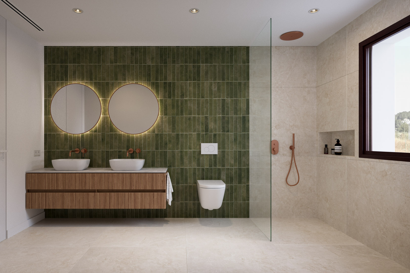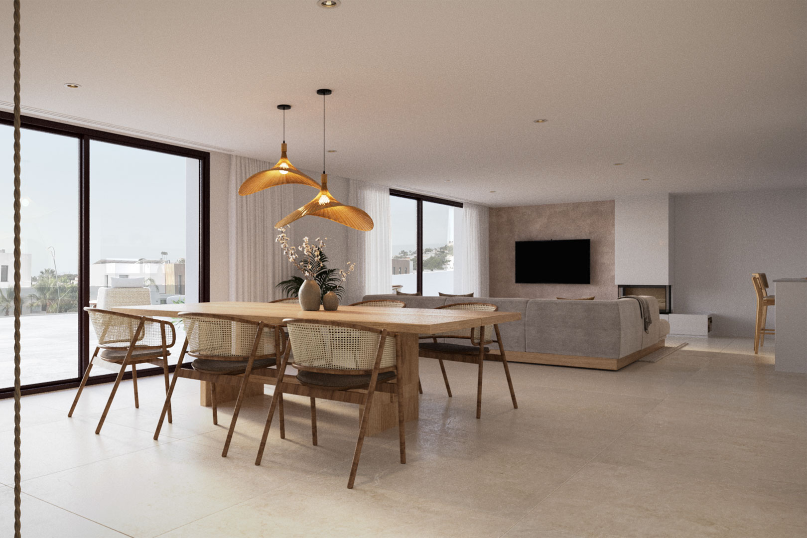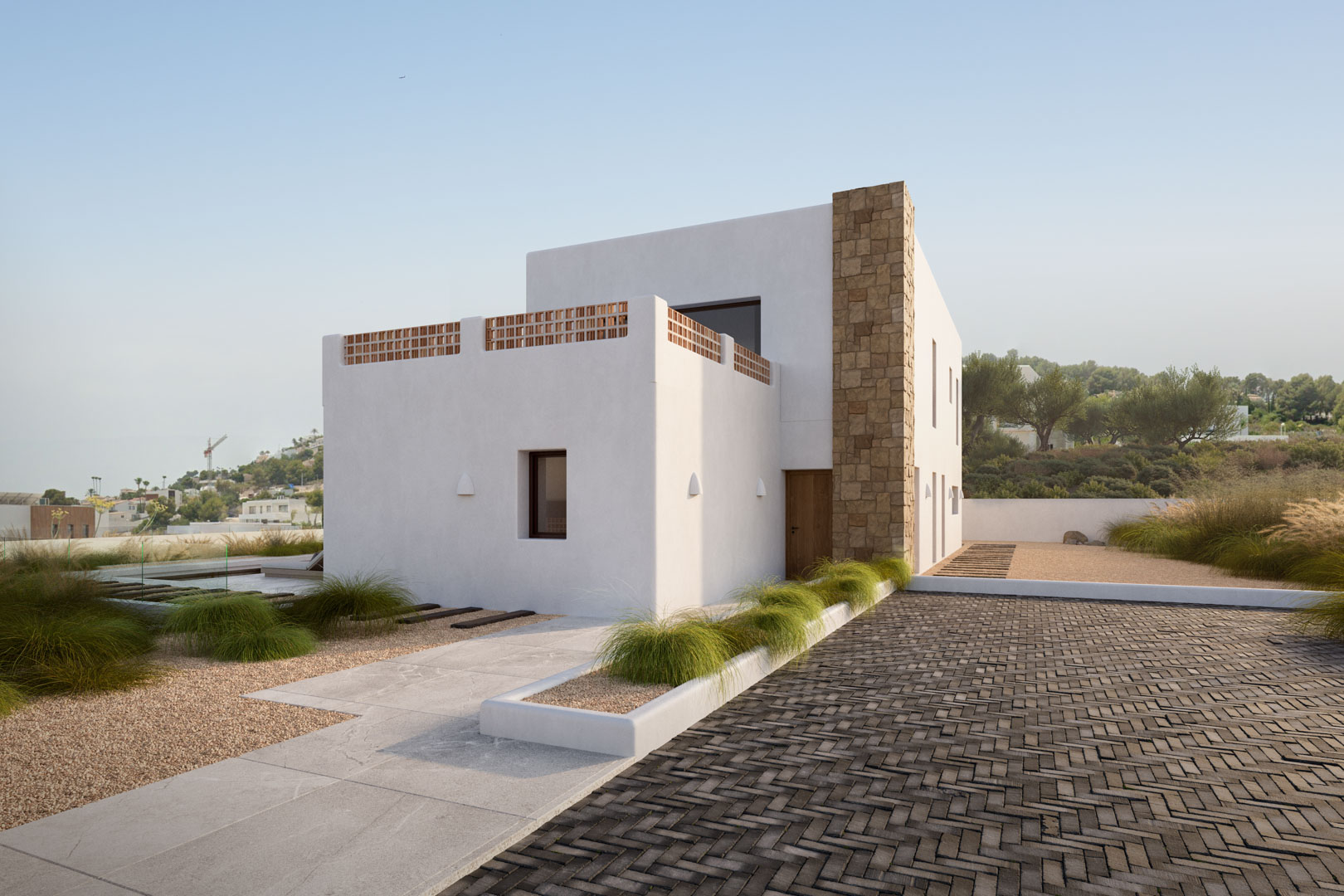 Die Villa wurde mit einem offenen Grundriss entworfen, der Geräumigkeit, natürliches Licht und ein konstantes Gefühl der Ruhe vermittelt. Warme Materialien und natürliche Details verleihen jedem Winkel Charakter und Harmonie.