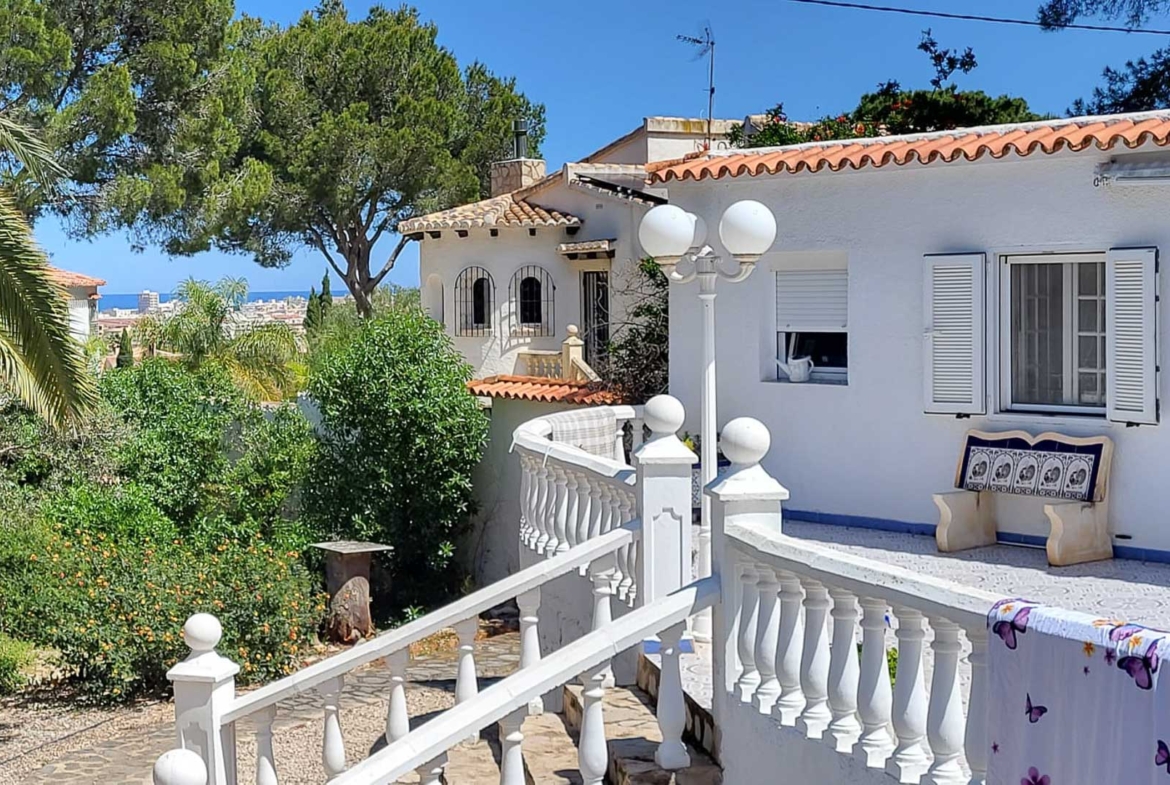 Impressive villa in one of the most quiet and pleasant areas of Denia, with stunning views of the Montgó Natural Park and sea views. The property is fully conditioned and ready to move in. The property consists of a fully furnished main house of 250m2 with gas central heating and air conditioning, with 4 bedrooms, the master bedroom with toilet, living room with fireplace, kitchen, shower room and a bathroom of about 30m2 with hydromassage cabin, a tower with a bedroom and bathroom, and a studio with shower room. There is a pool house with a kitchen, a shower room and a storage room. There is also a covered area with a barbecue, 2 benches and a table, and a garage with a pergola. It has a plot of 2700m2 with access from two streets, completely private and fenced with large well-kept gardens, a well, several terraces with greenery and a private pool. And best of all, on the plot there is the possibility of building another house of 200m2. It is located 1 km from Denia and 2 km from the sea. In total the villa has 6 bedrooms, 5 bathrooms, 2 kitchens.
